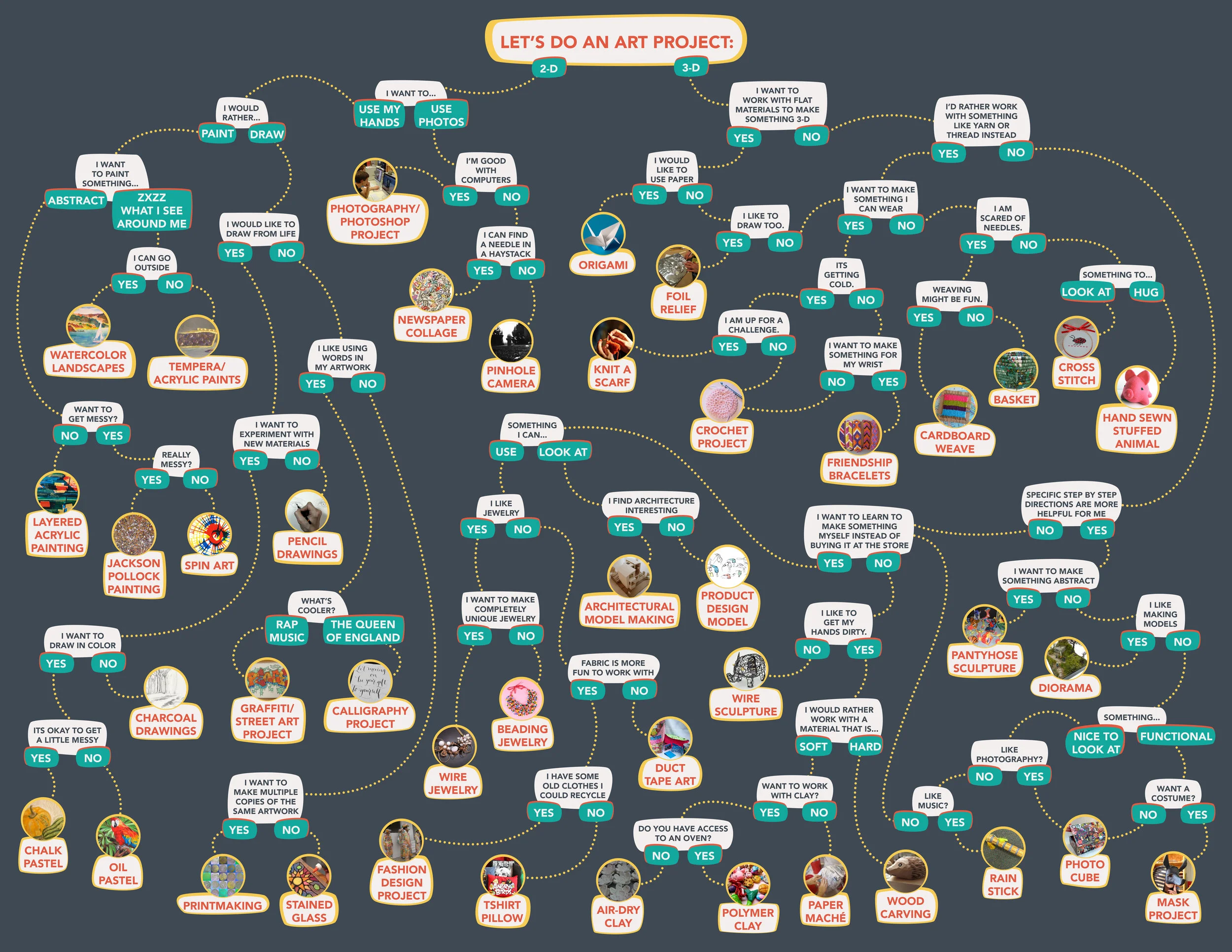 Because I worked from a systematic perspective, making the switch to a physical format was simple. The image to the right is a large poster that could be hung in a classroom. It works the same way the quiz does, and allows the student to find his or her perfect project.