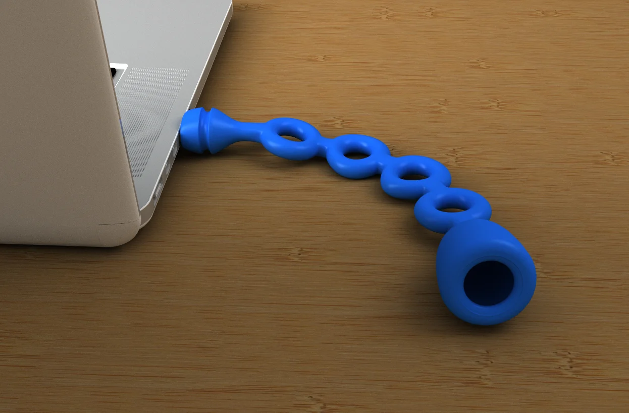 The Fidigital Flash is a USB flash drive designed for people who just find their flash dives way too boring. Most flash drives are designed to be convenient and easy to attach to our computers and access our files. The fact of the matter is, though, that this pragmatic functional use of the flash drive only accounts for a very small portion of the time you have the object. My goal was to design a flash drive that would focus on the possibilities the object has outside of it functional use. What I came to is a fun, stretchy object you can play and fidget with. Whether you're in a boring meeting, watching some Netflix on your laptop, or simply walking around, the Fidigital Flash is a fun easy way to play with your digital life.